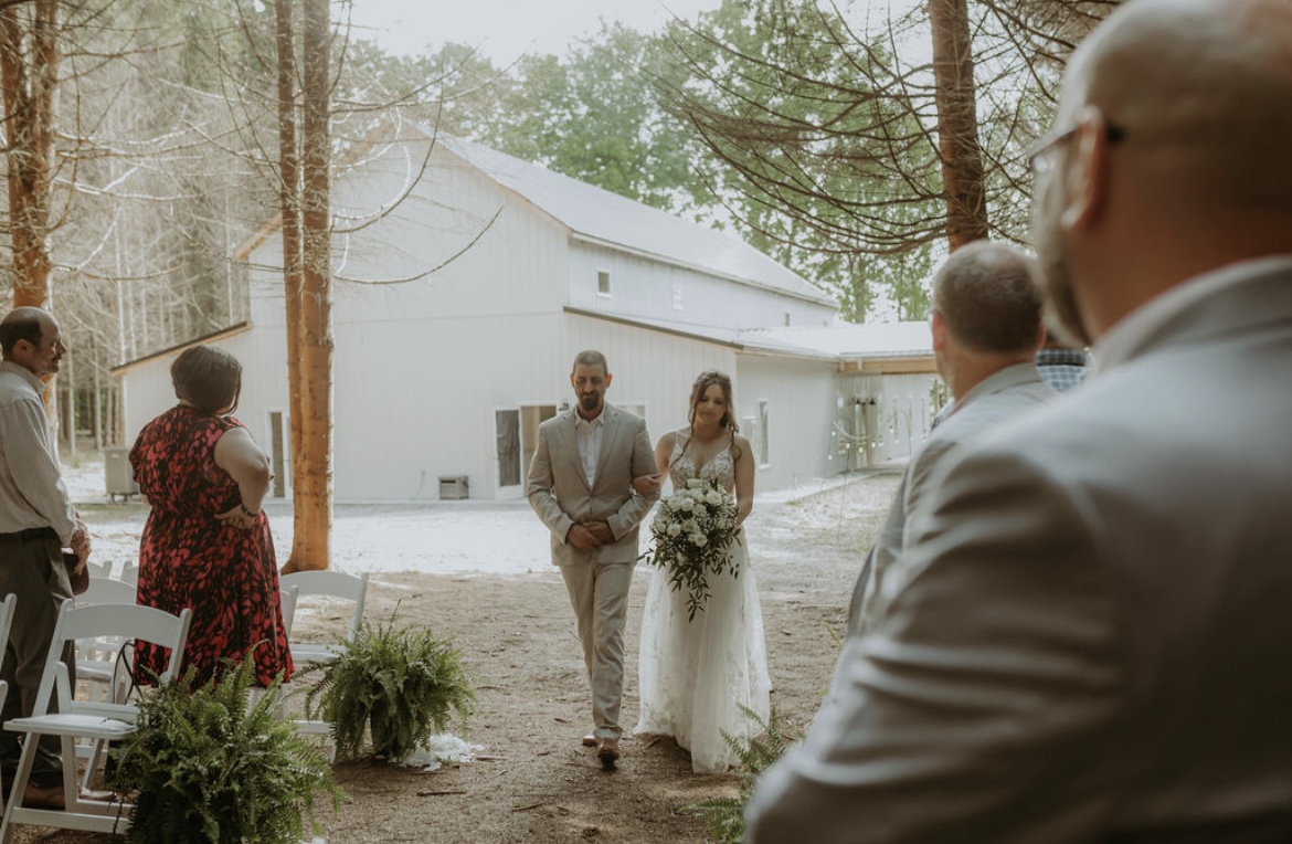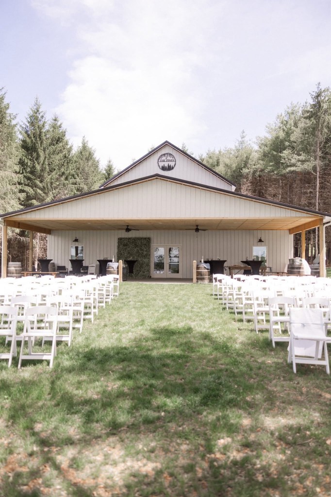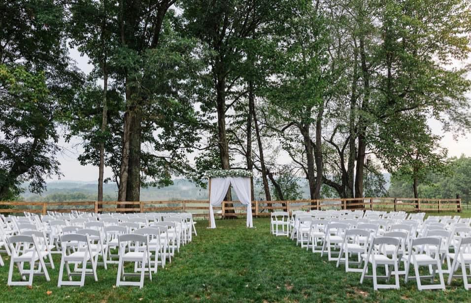 The pines offers different scenic views for an outdoor wedding- we have beautiful views of both rolling mountains & lush pine trees, giving you the option for the ceremony of your dreams! We provide you with white resin chairs for your outdoor ceremony & have now added 22 wooden benches to our inventory, available for your use as well.